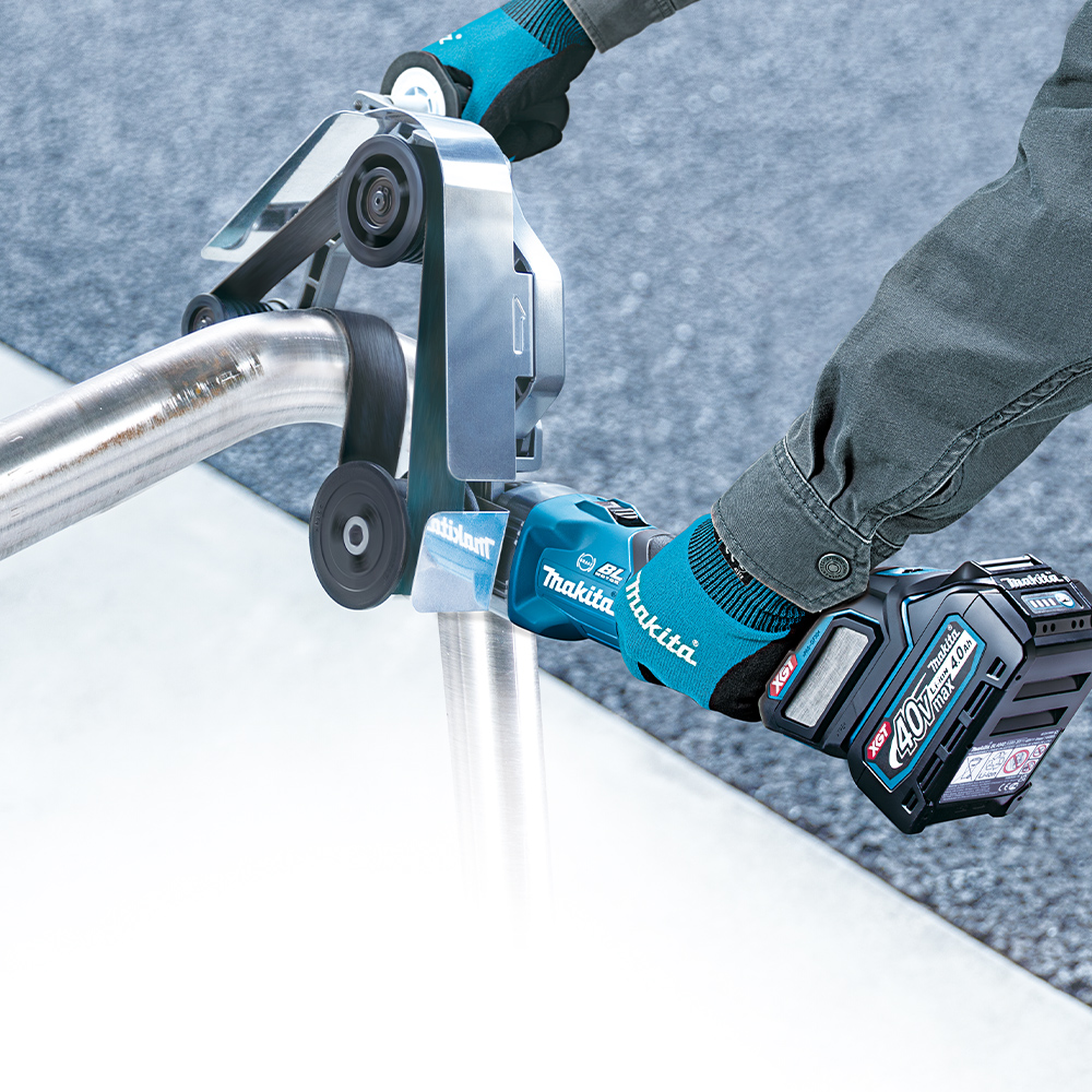 Cordless Pipe Belt Sander powered by a 40Vmax XGT Li-Ion battery.